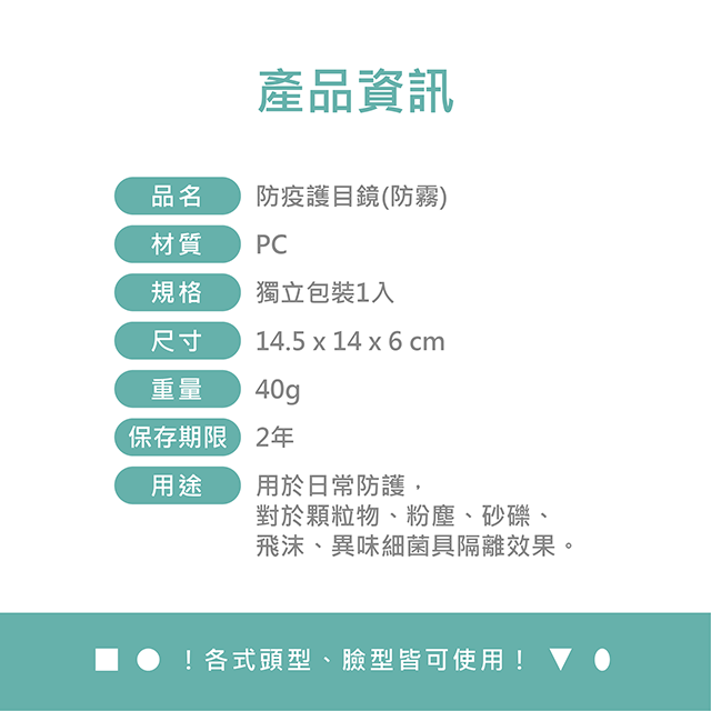 ? 嚴選PC材質防霧、防水、耐衝擊、耐刮